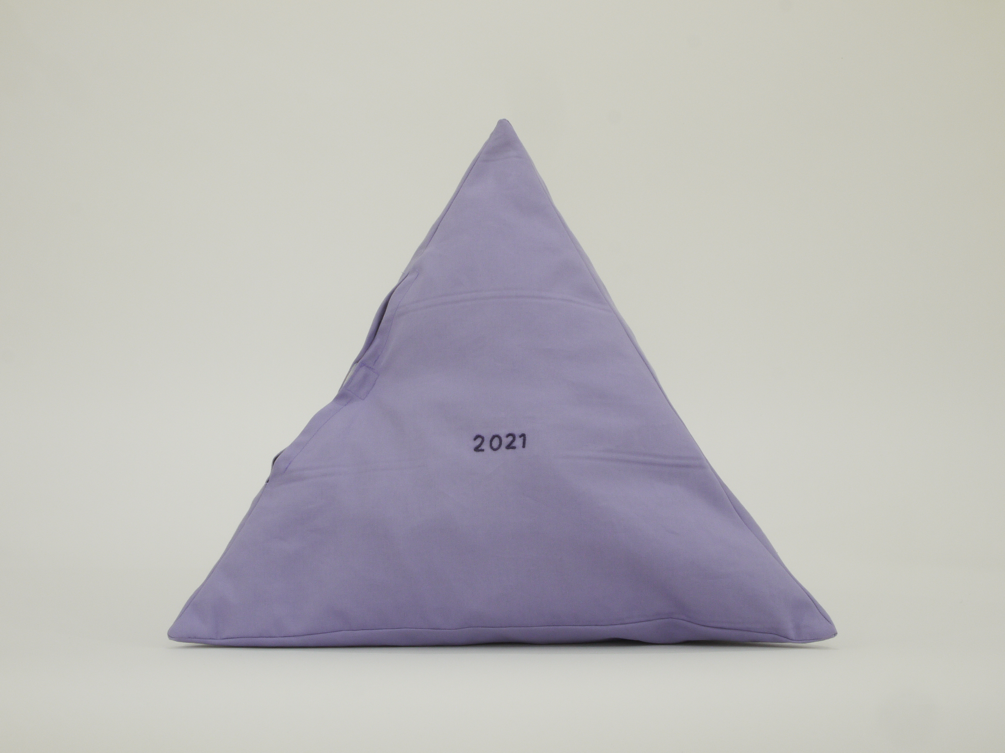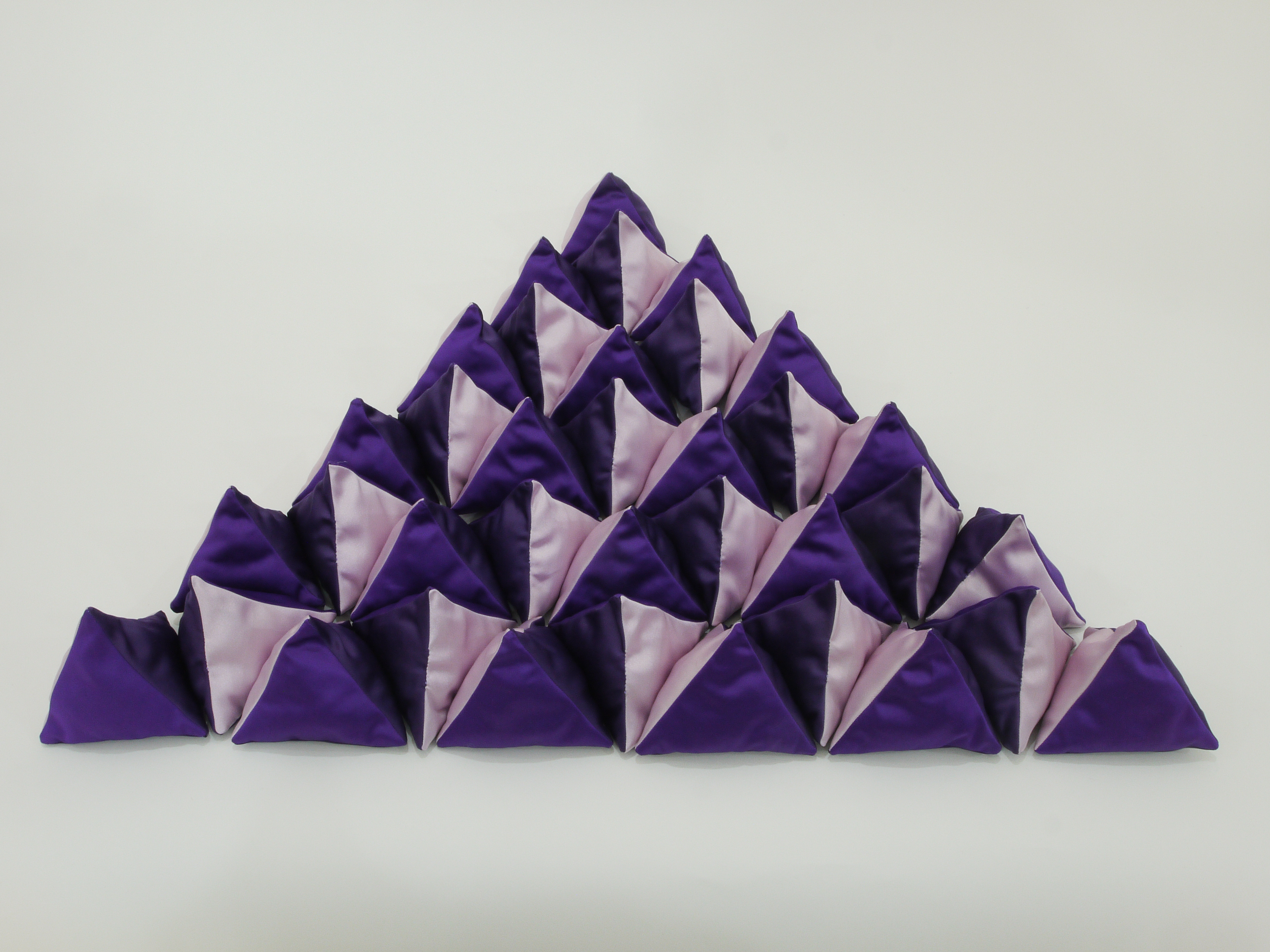 Embroidered fabric triangular pyramid pouch, traingular pyramid headdress, smock, 36 small stuffed triangular pyramids