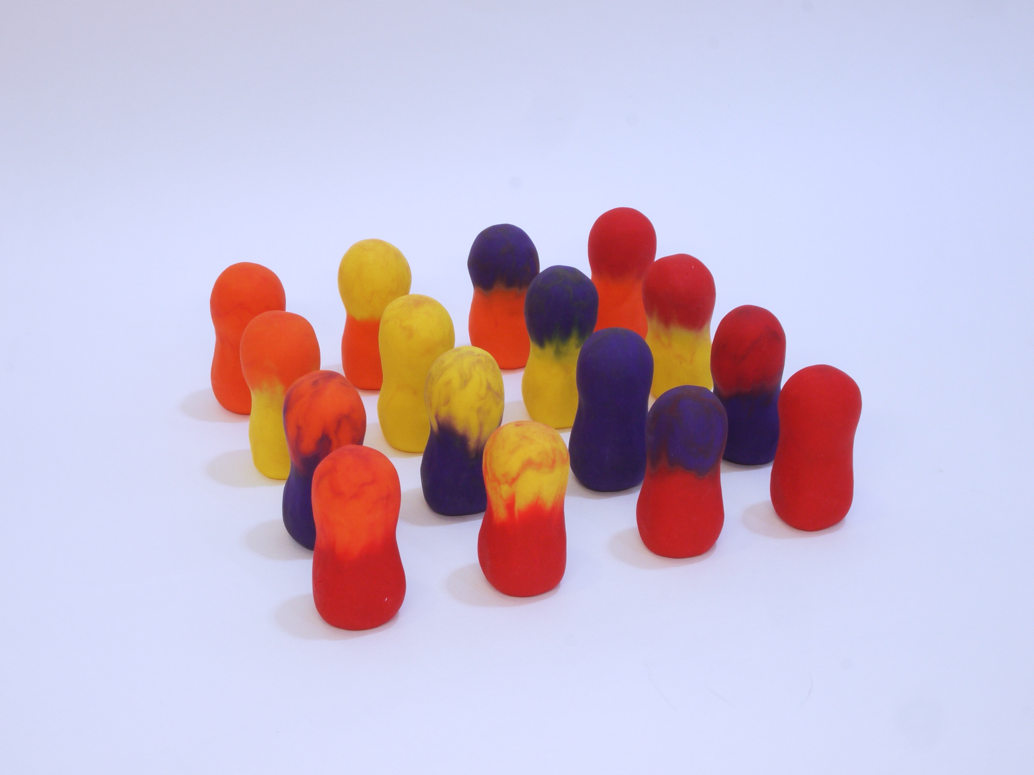 Colored pencil, paper, permanent marker, oil pastel, stamp ink, string