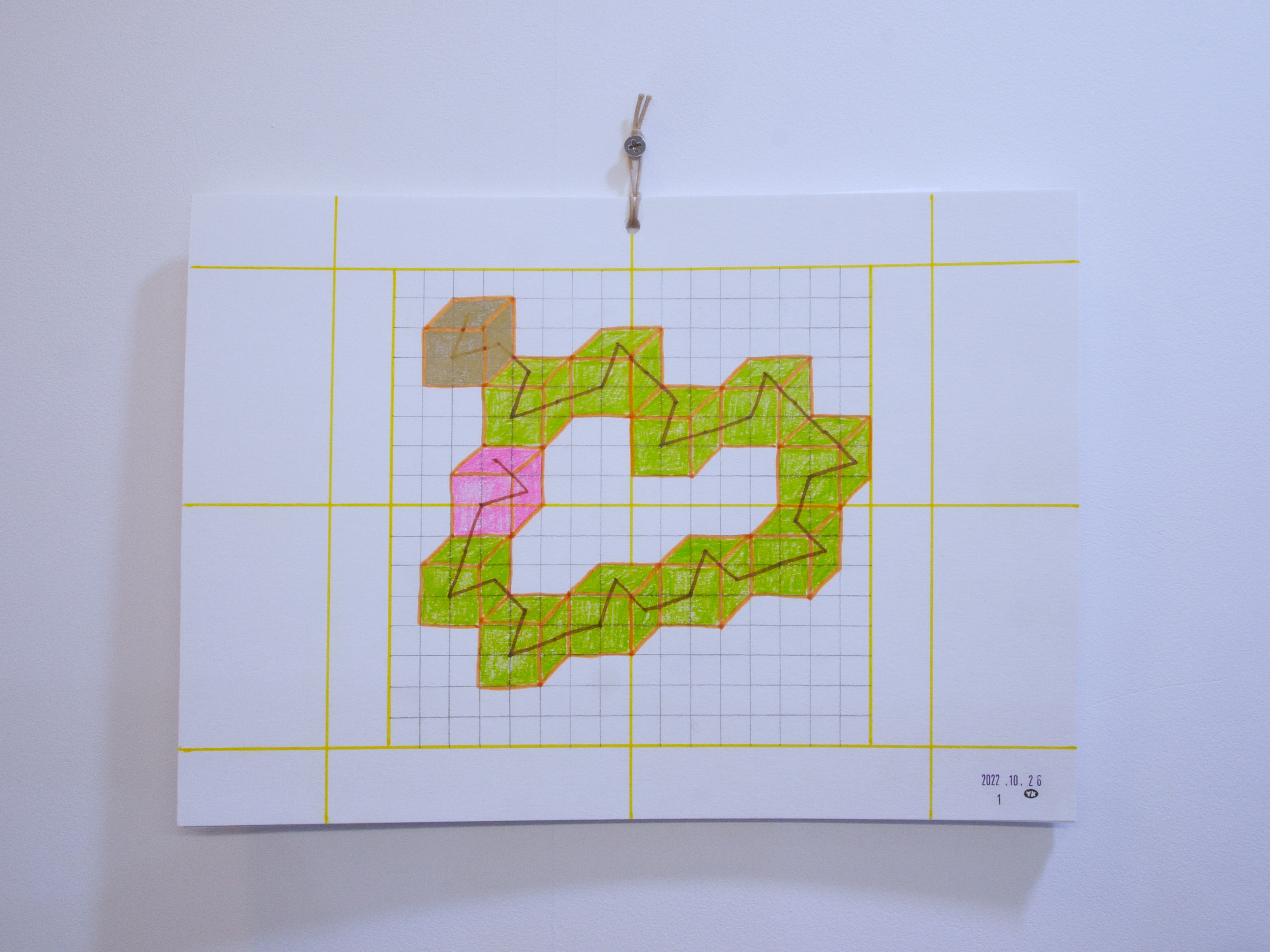 Colored pencil, A5 and A4 paper, pencil, permanent marker, stamp ink, string, watercolor